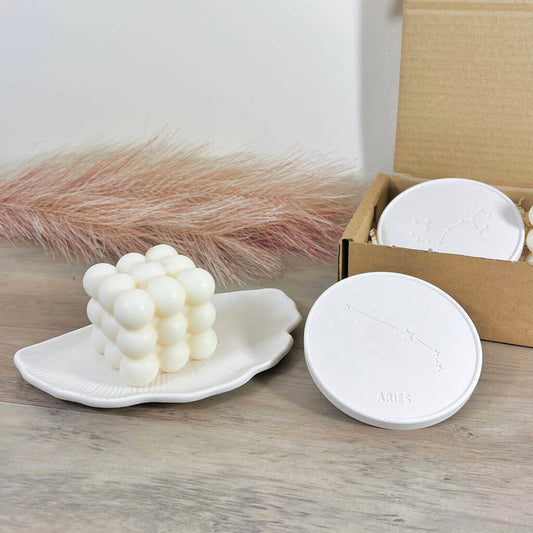 Personalised Coasters with Zodiac Sign and Soy Wax Bubble Cube Candle Gifts