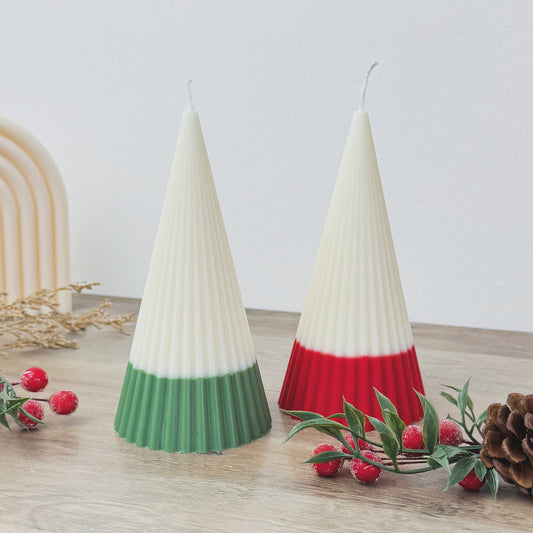 Minimalist Christmas Tree Candles - Modern Christmas Candle - Ribbed Pillar Candle