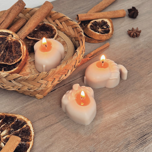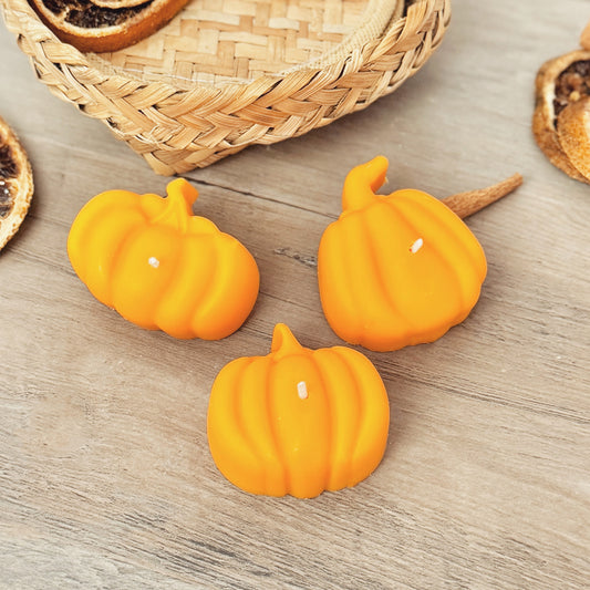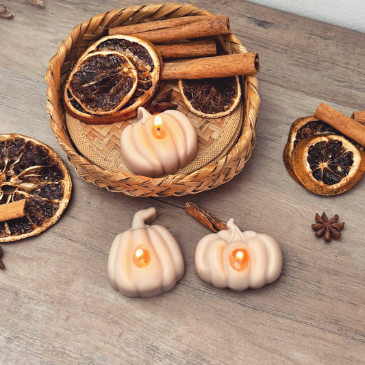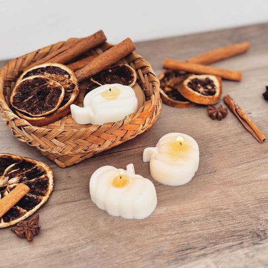 Beige Autumn Pumpkin Tea Light Candle Set - Natural Halloween Pumpkin Candles