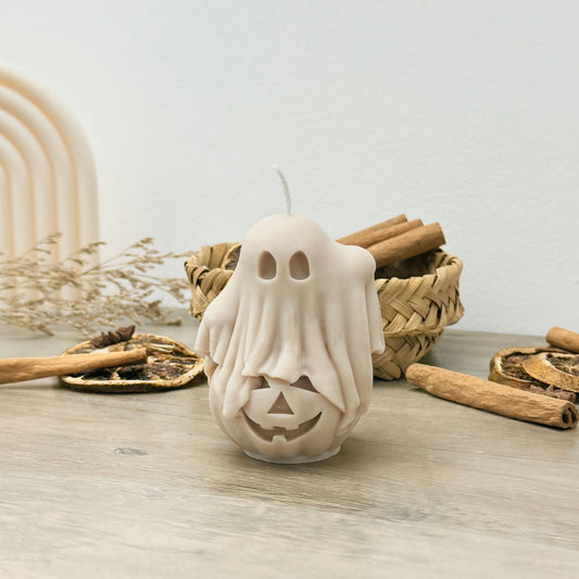 Beige Ghost and Pumpkin Halloween Candle - Ghost Halloween Decoration