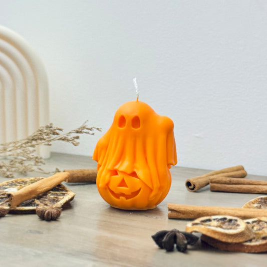 Cute Ghost and Pumpkin Candle - Orange Halloween Candle - Halloween Gift