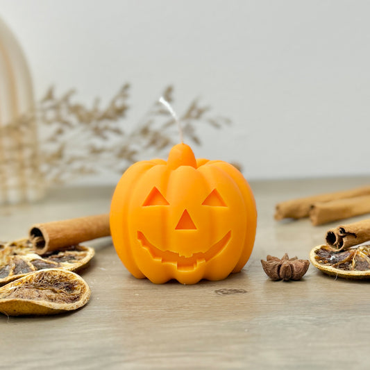 Orange Carved Pumpkin Candles - Halloween Pumpkin Decorations - Spiced Pumpkin Candle