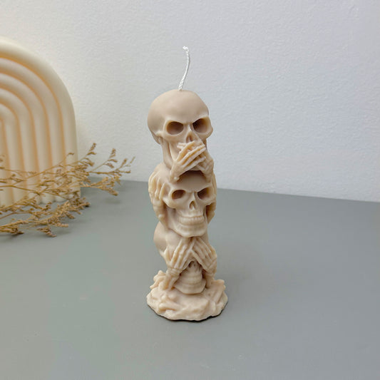 Stacked Skull Pillar Candles - White Skeleton Halloween Decoration Candle