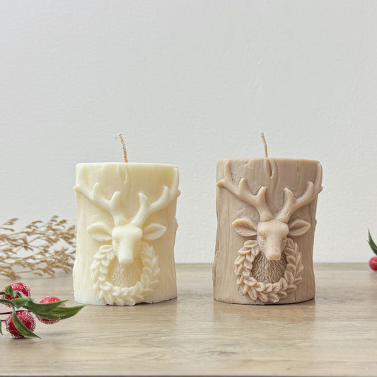Traditional Christmas Candle - Stag Christmas Pillar Candle - Christmas Reindeer Decoration