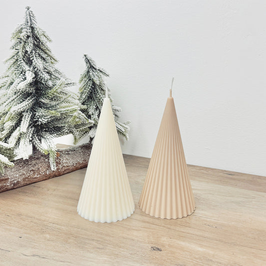 Ribbed Minimalist Christmas Tree Candle - Neutral Christmas Candle - Christmas Pillar Candle