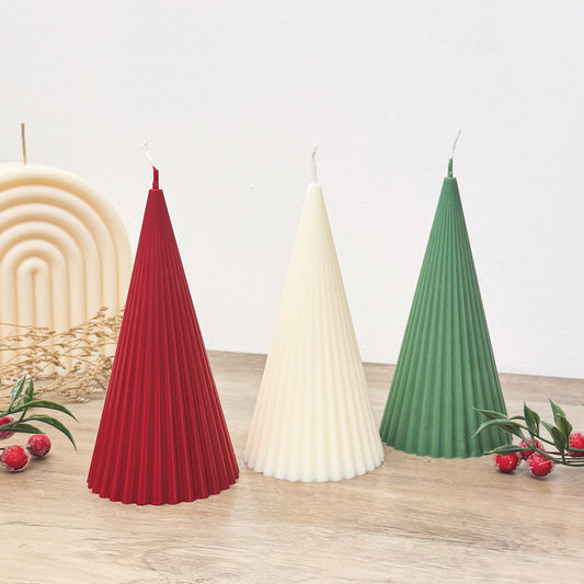 Minimalist Christmas Tree Candles - Modern Christmas Candle - Ribbed Pillar Candle