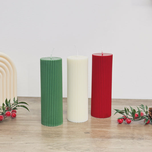 Ribbed Christmas Pillar Candles - Colourful Christmas Candles - Christmas Decor Candles