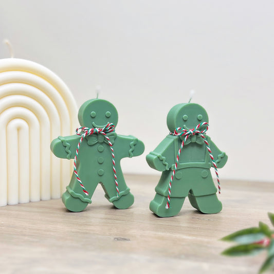 Green Christmas Gingerbread Candles - Festive Gingerbread Man Candle