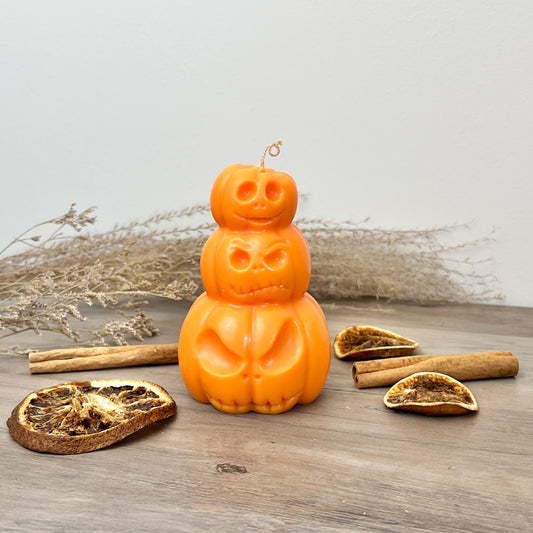 Pumpkin Halloween Candle - Stacked Pumpkin Decoration - Carved Pumpkin Candles