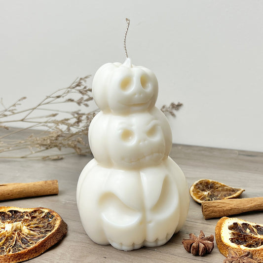 Stacked White Pumpkin Candle - White Jack-O-Lantern - White Halloween Decoration Candles