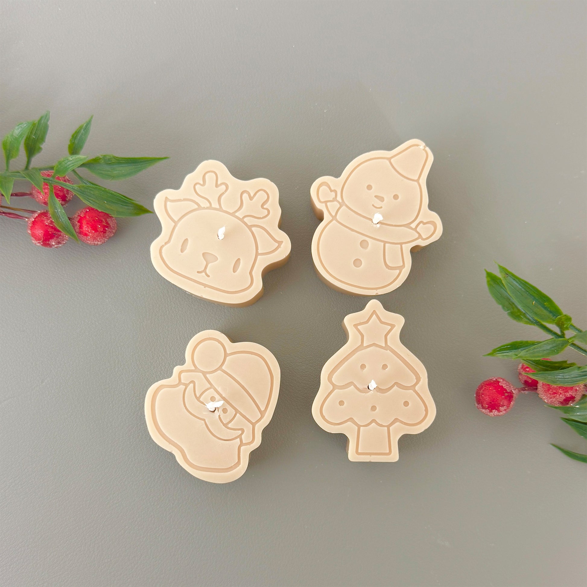 This Christmas tealight set includes four lovingly handcrafted soy wax tealight candles in popular festive designs; Santa Claus, Snowman, a Christmas Tree, and a Reindeer. Presented in a gift box, this Christmas candle set makes a perfect Secret Santa gift or stocking filler Christmas treat for a friend.