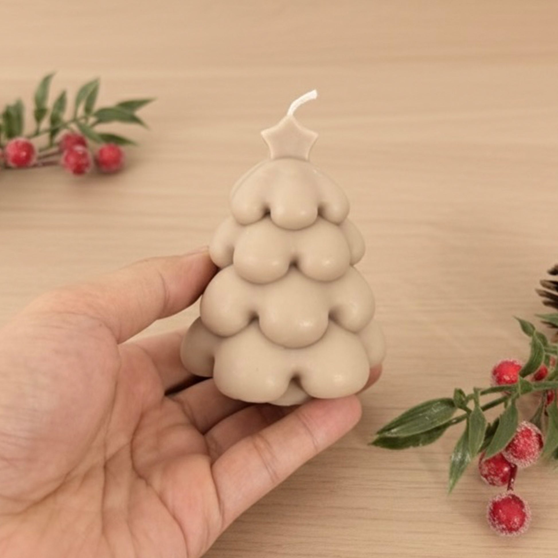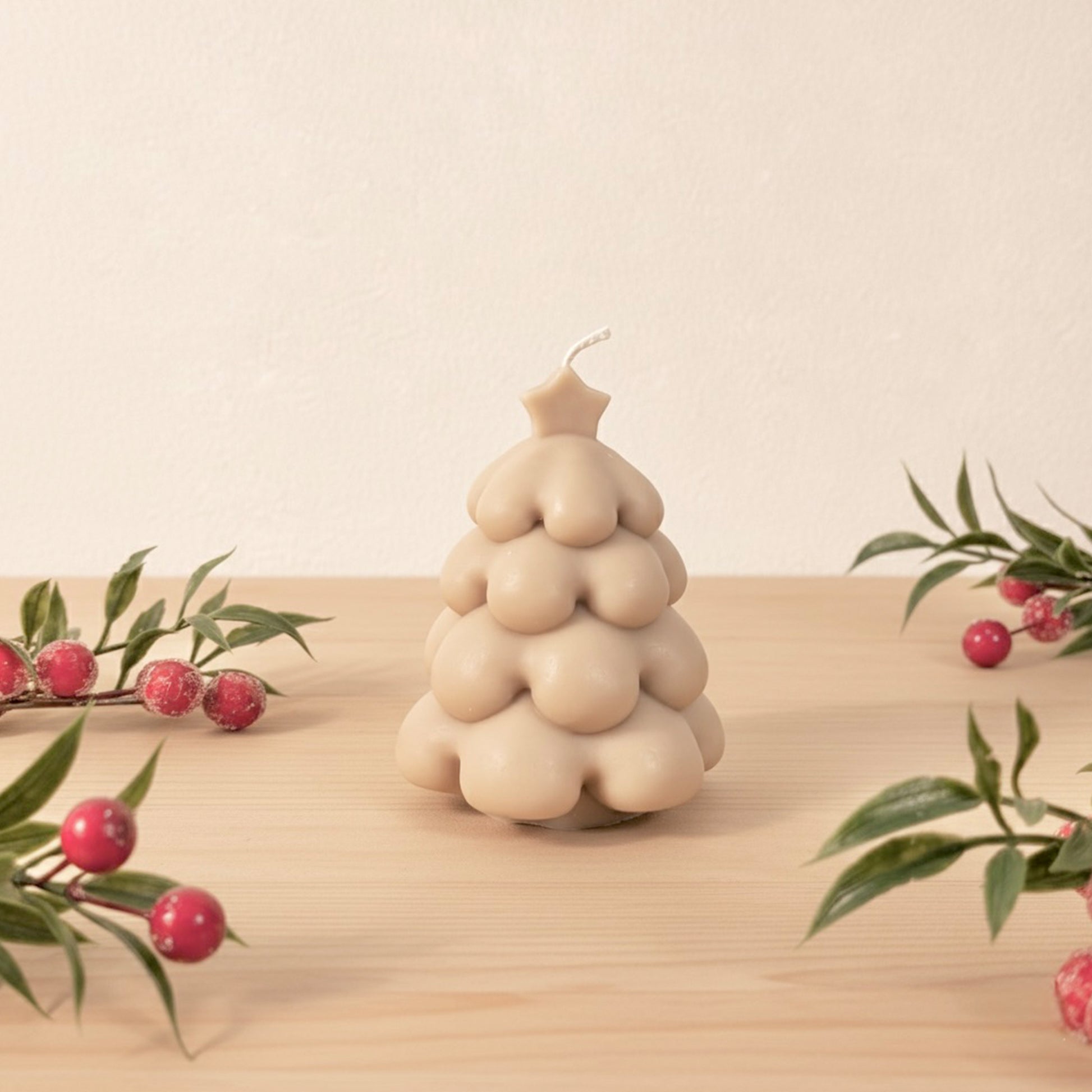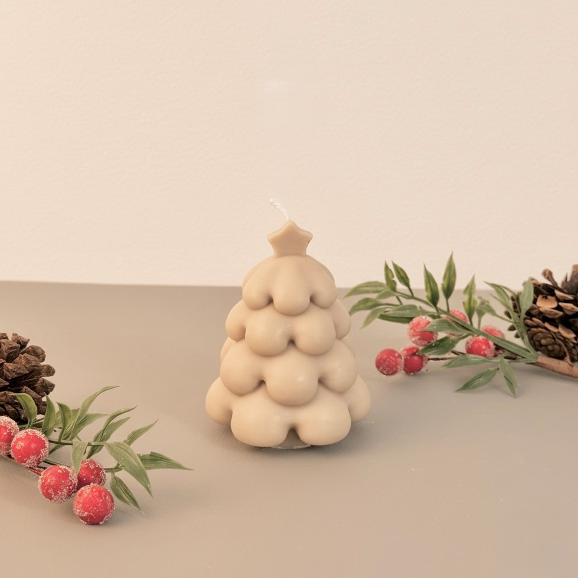 Beige Christmas Tree Candle and Christmas Decoration - Christmas Candles