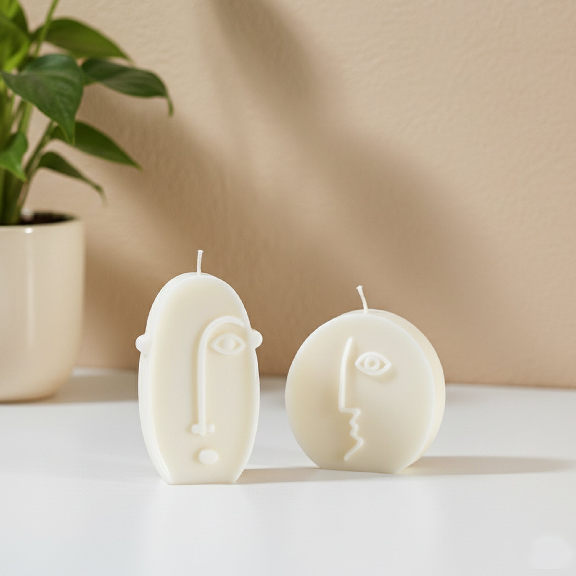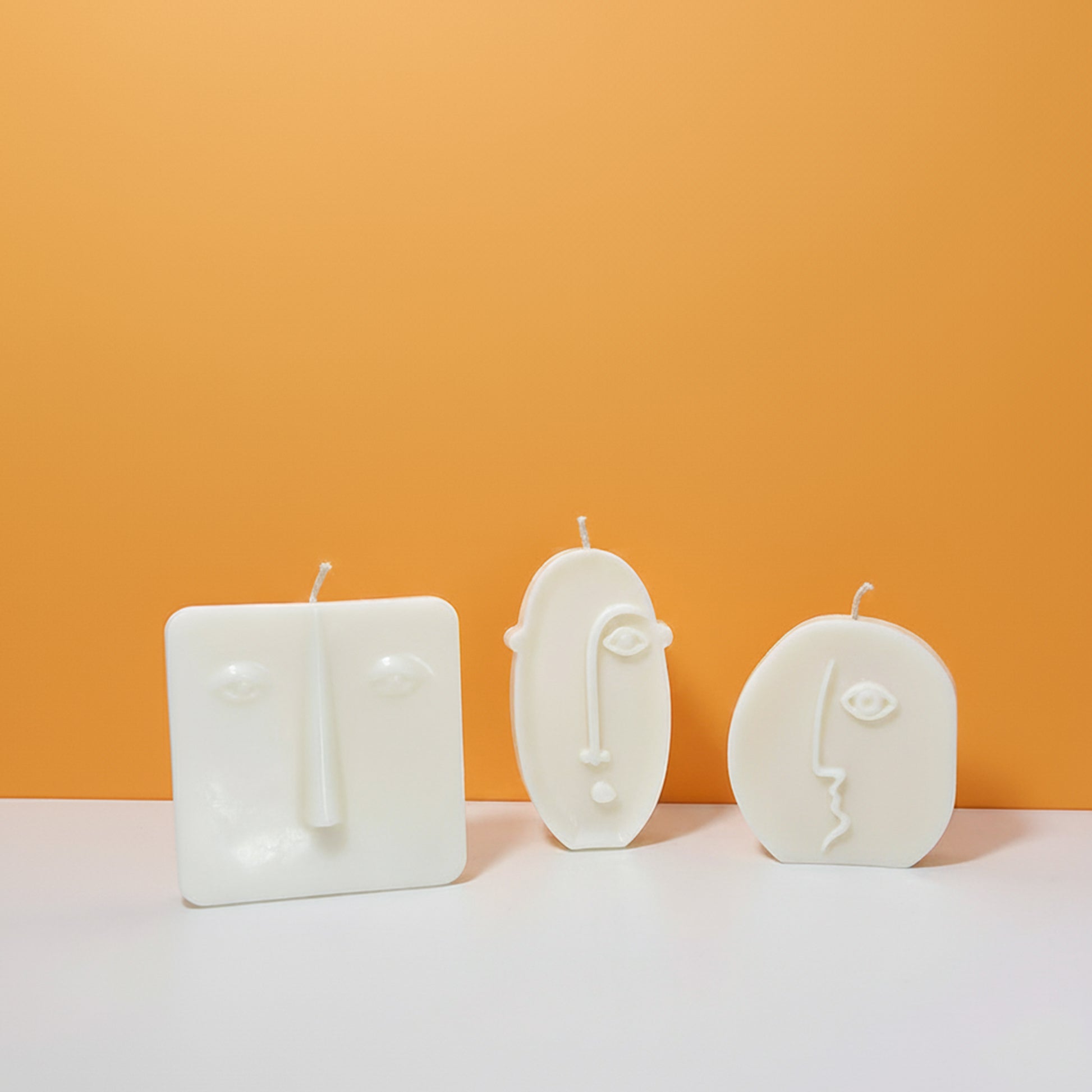 Tall Oval Shape Pillar Candle - Decorative Face Candles - Moai Face Shape Candle